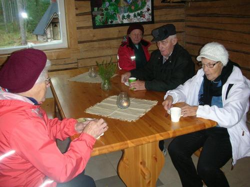 Vietimme ulkoilupäivää Laturastin majalla, paikalla 14 ulkoilusta kiinnostunutta ja muutenkin yhteistoiminnasta. Anja laulatti ja skip-bo kortitkin oli käytössä. Makkarat paitui kodalla ja oli mukavan leppoinen sää....joku oli yläkerran kanssa hyvissä väleissä.